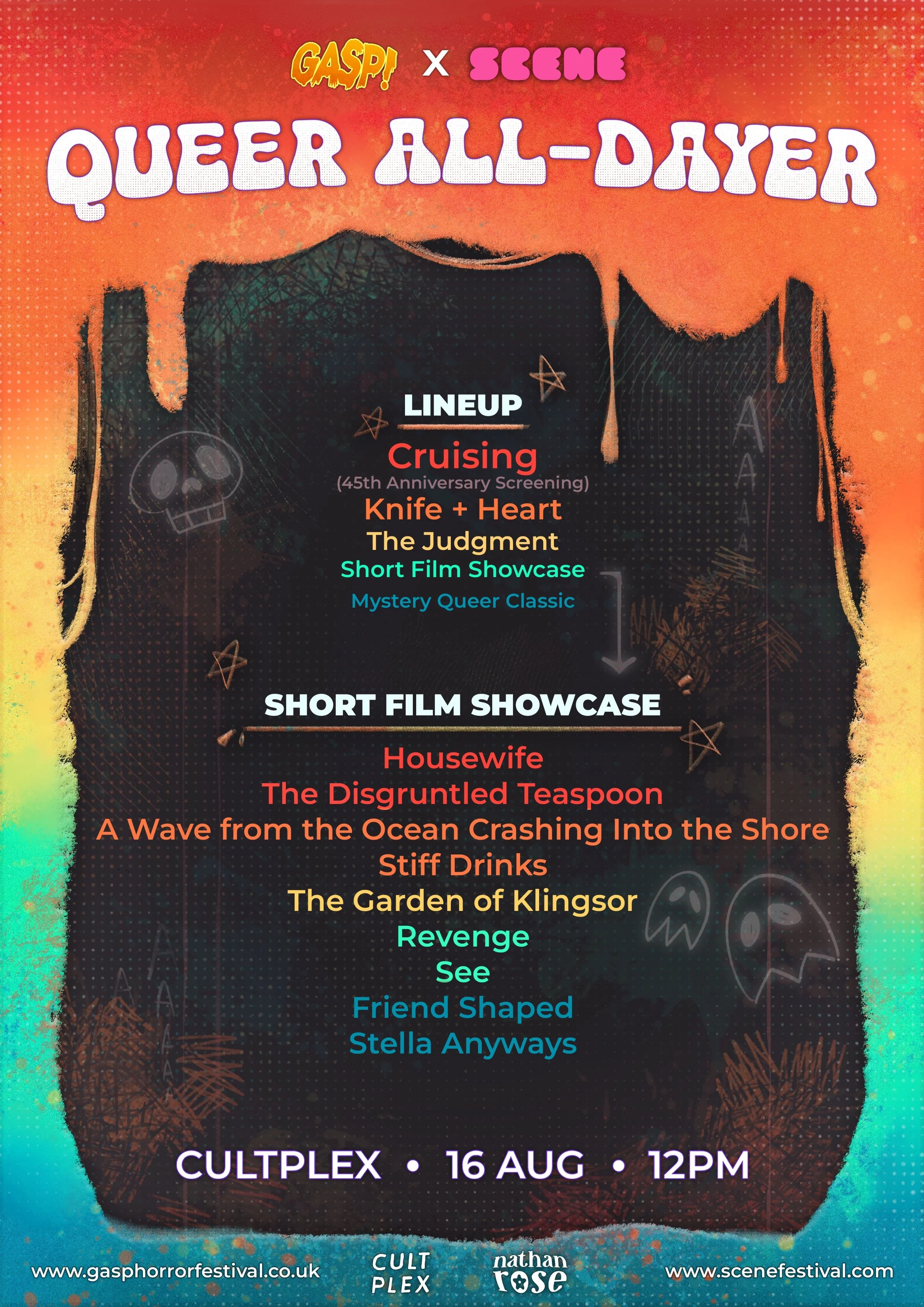 On August 16th, GASP! will be heading back to Cultplex and teaming up with SCENE LGBTQ+ Film & TV Festival to bring you a day filled with brand new and classic queer horror films as part of the buildup for Manchester Pride! The aim of this day is to celebrate queer cinema and queer filmmakers, giving you a chance to see unreleased films and classics that are rarely screened, as well as to provide a preview of what it’s like to attend the yearly GASP! Film Festival with the inclusion of a Short Film Showcase, the Mystery Queer Classic, an Anniversary Screening, and more!